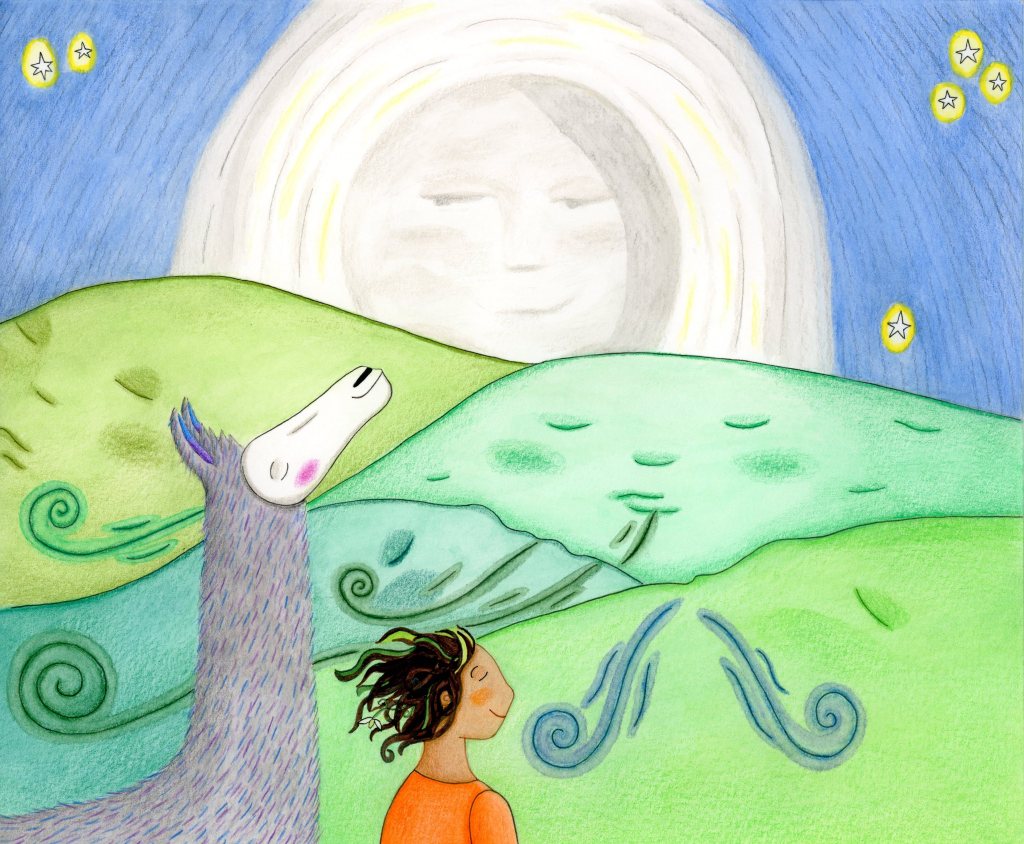 Llama, Girl, and the Sunriseflower